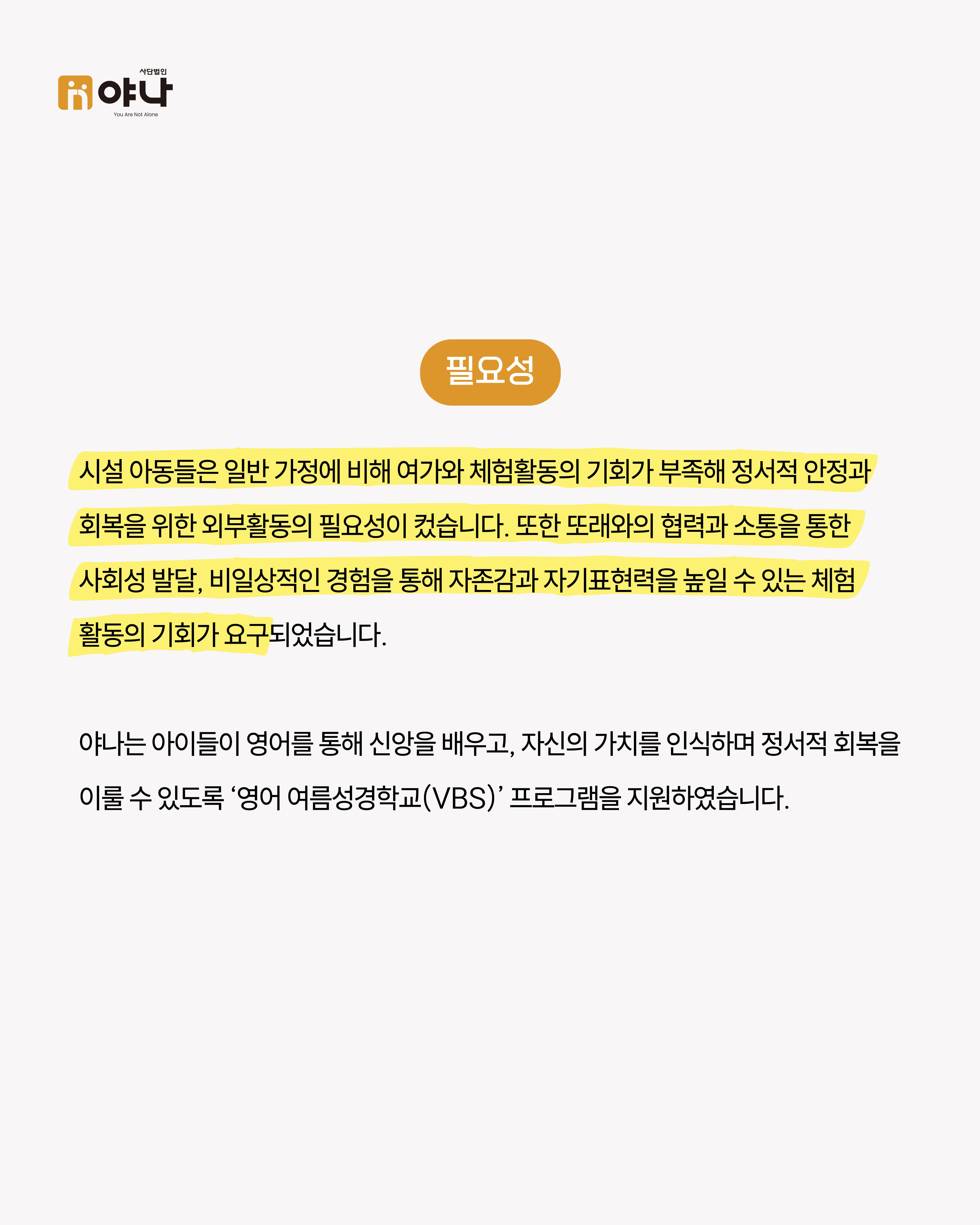 야나는 앞으로도 아이들의 성장과 자립을 위해 함께하겠습니다.