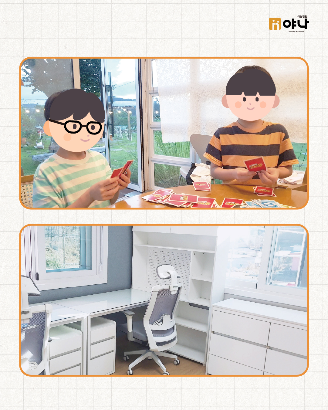 재정비된 생활공간 이후, 아동들이 안정적으로 일상을 이어갈 수 있도록 컴퓨터와 책상, 책장 등