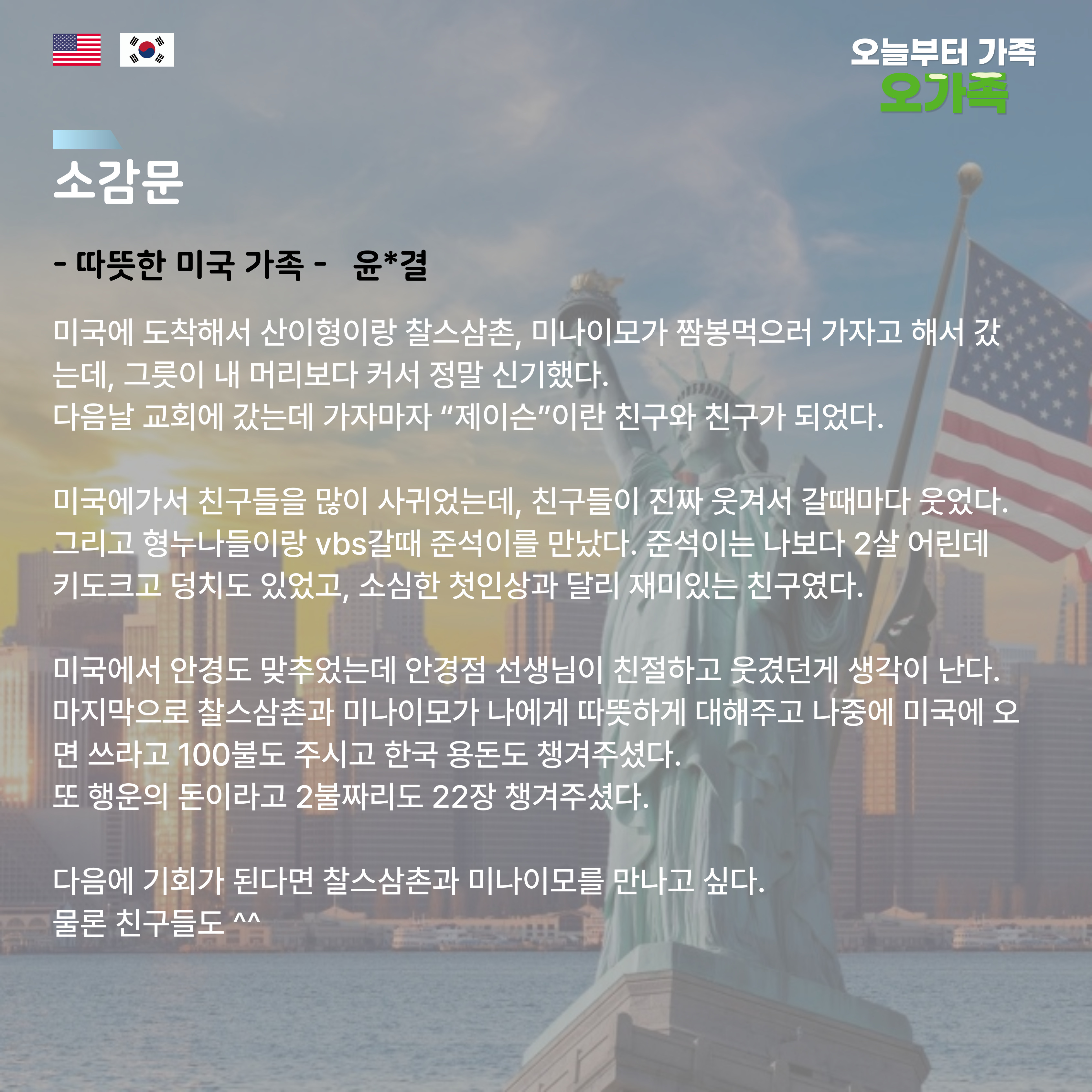 사단법인 야나(한국)와 야나 미니스트리(미국)가 협력하여 한국 보육시설 아동과 미국교회 가정을 1:1로 연결하는 프로그램을 진행하였습니다!