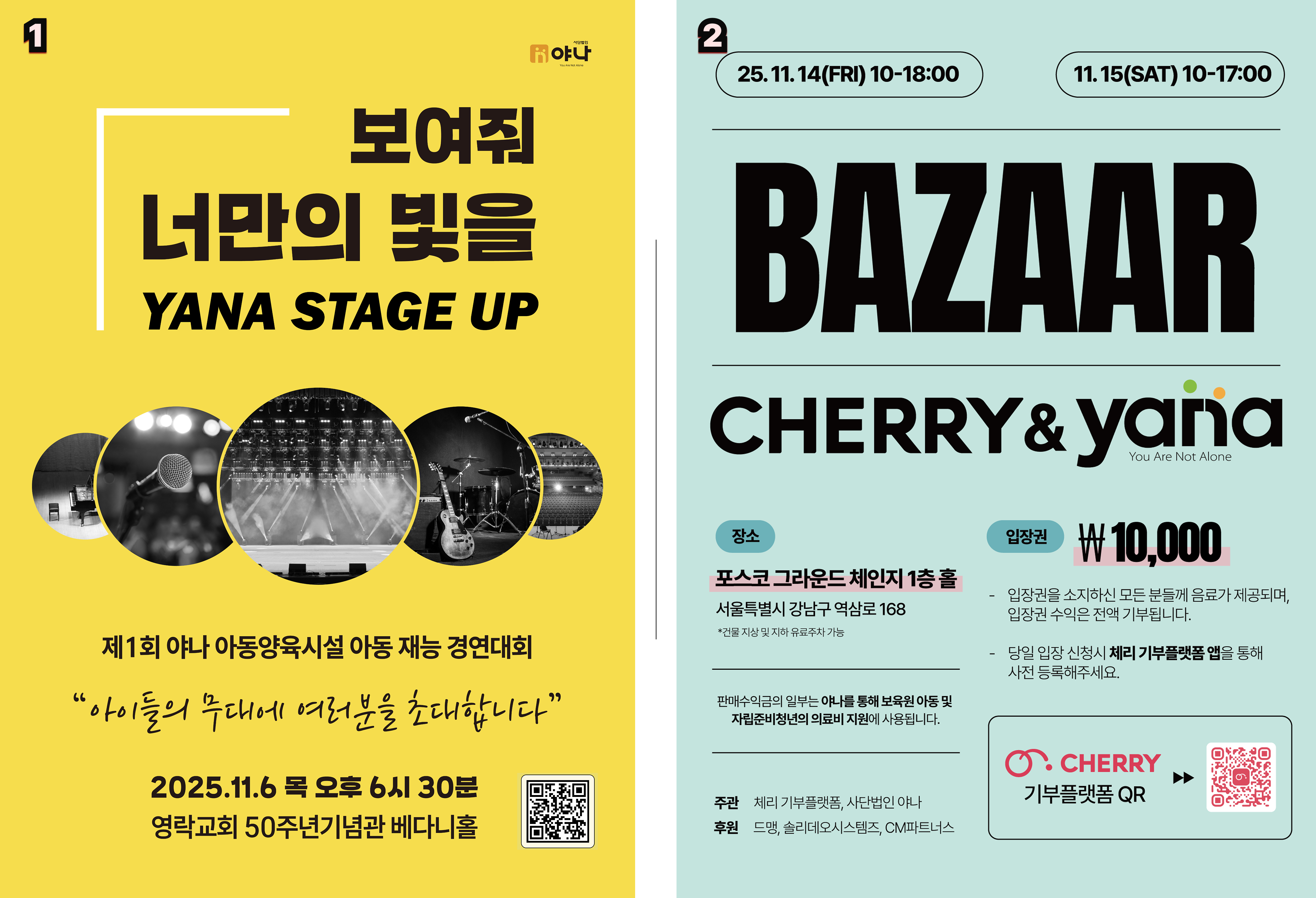 신애라 홍보대사님의 사회로 진행된 찬양제는 교회의 여러 합창단의 무대와 함께 소프라노 이윤정·조은지, 첼리스트 김선영, 바이올리니스트 김연아 양의 특별 연주가 더해져 은혜로운 시간이 되었습니다. 야나의 보육원 사역과 자립준비청년들을 알리는 야나의 영상과 함께 홍보대사님의 진심 어린 소개가 이어졌습니다.