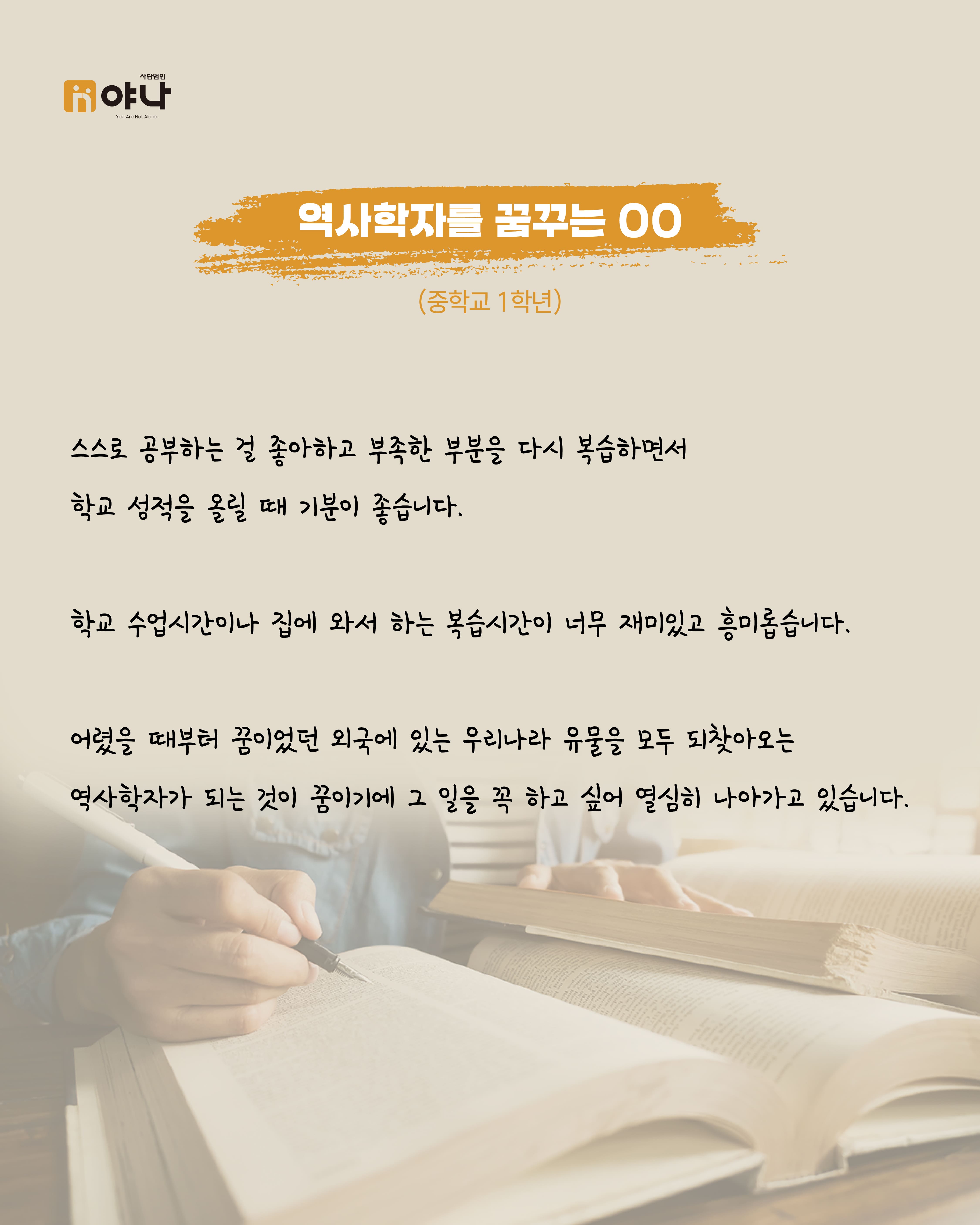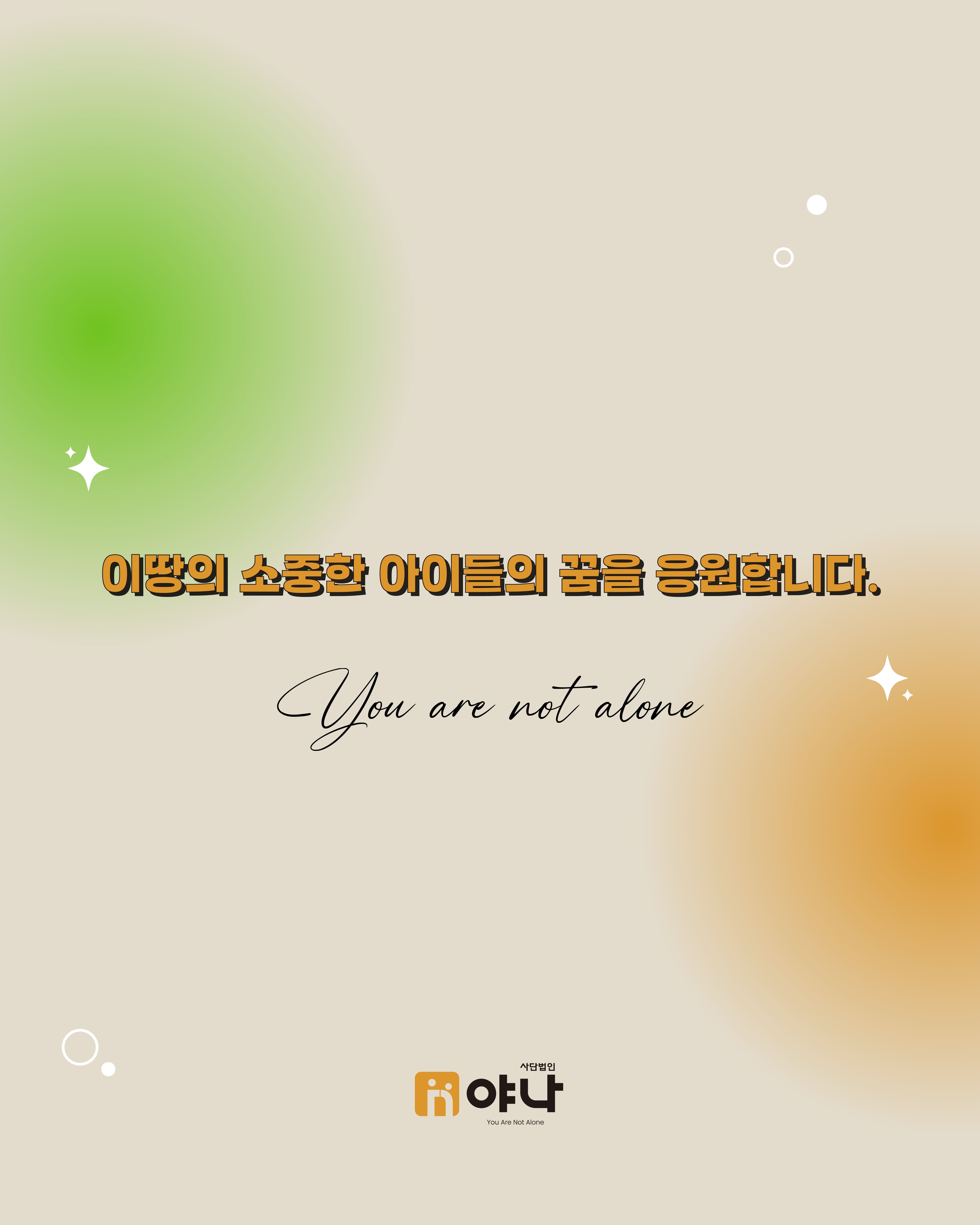 평소 한부모가정과 아이들의 교육지원을 위해 후원하고 계신 야나의 익명 기부자의 지정기부로 진행됩니다.