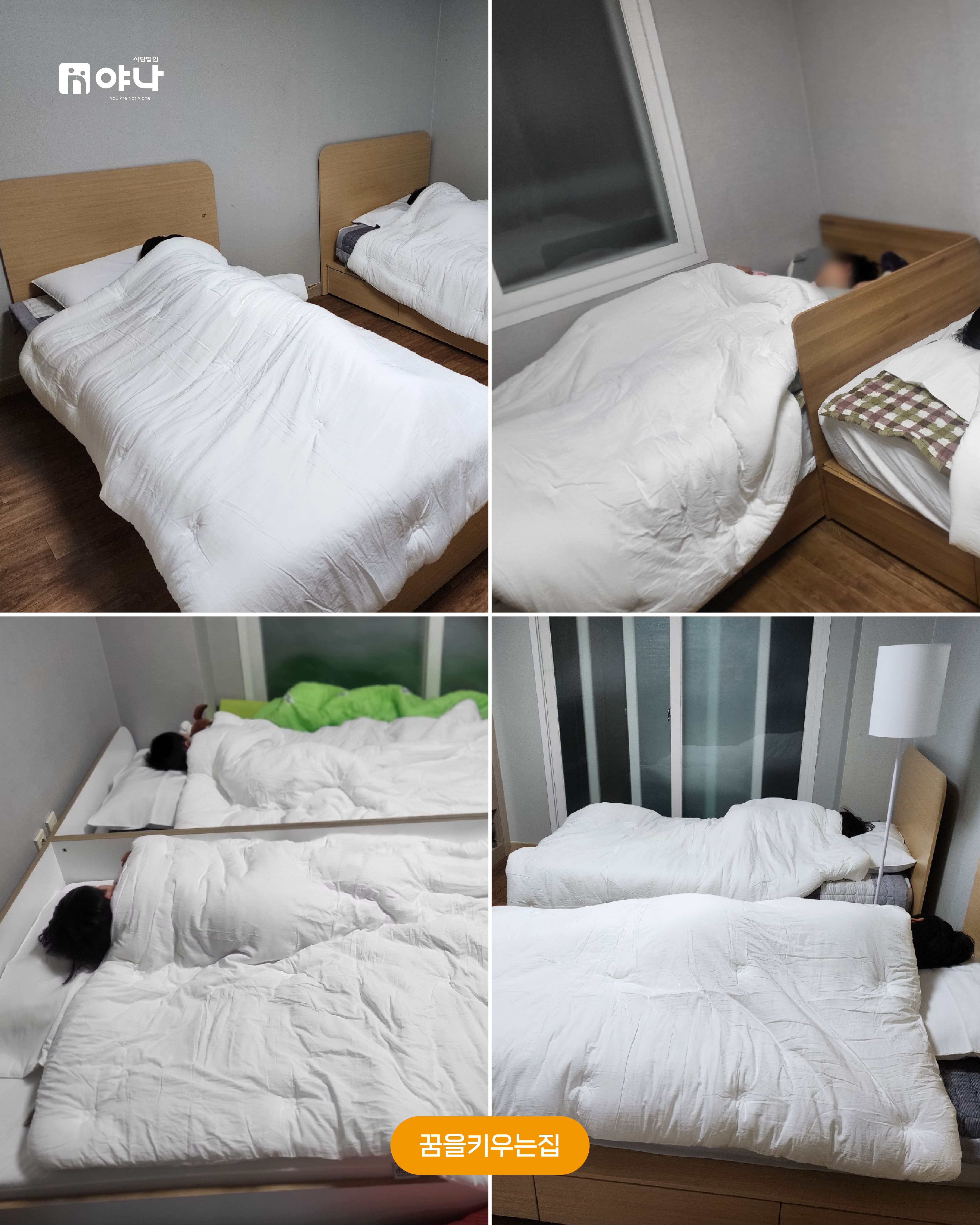 "야뇨증이 있는 아이들이 있어 이불을 자주 빨아 해지거나 뜯어진 경우가 많았습니다.
