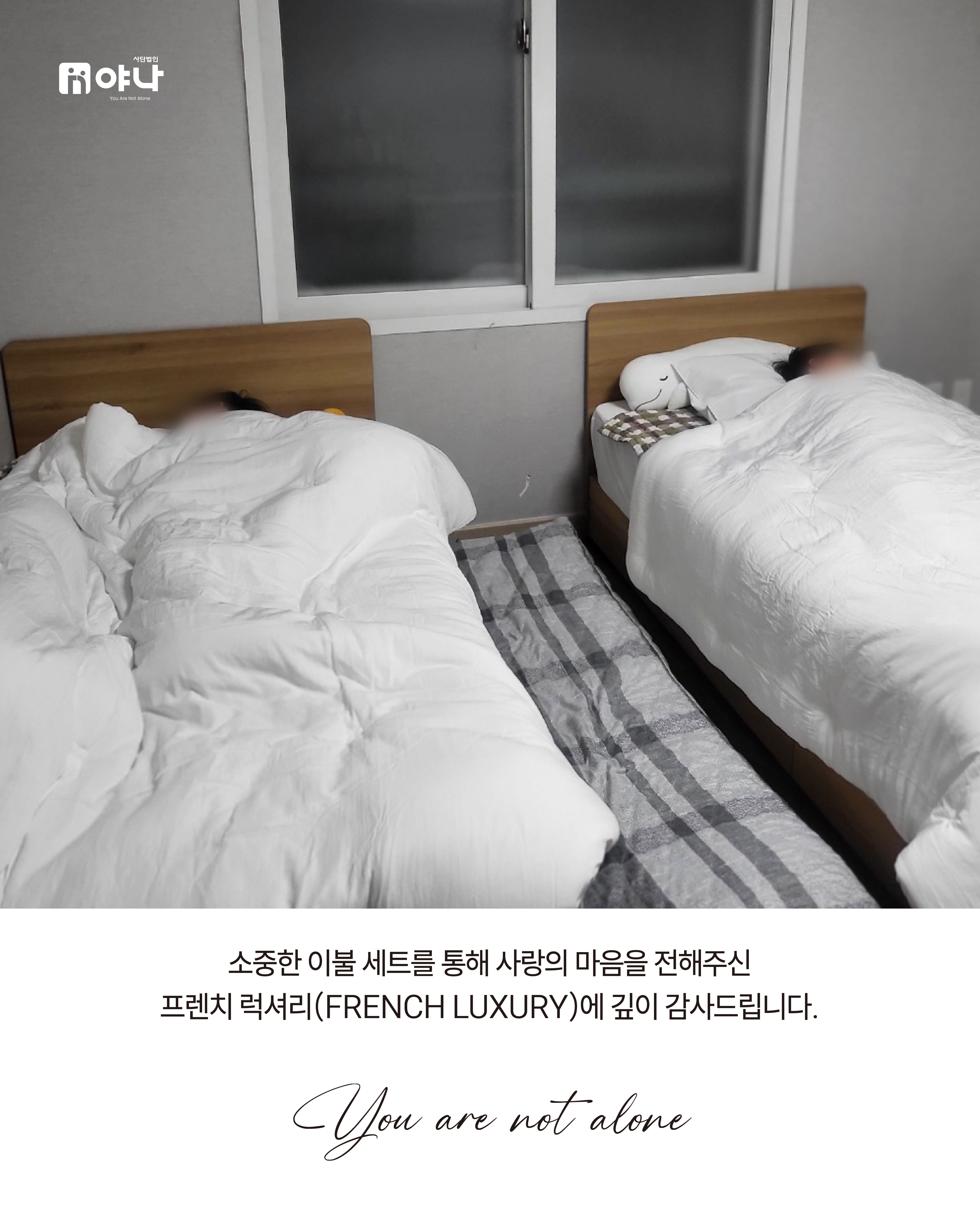소중한 이불 세트를 통해 사랑의 마음을 전해주신 프렌치 럭셔리(FRENCH LUXURY)에 깊이 감사드립니다.