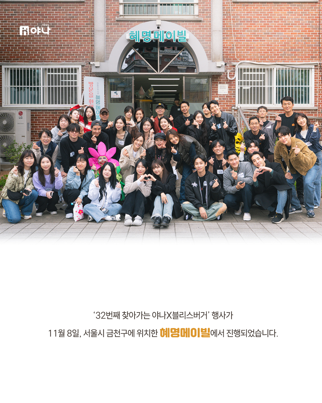 ‘32번째 찾아가는 야나X블리스버거’ 행사가 11월 8일, 서울시 금천구에 위치한 혜명메이빌에서 진행되었습니다.