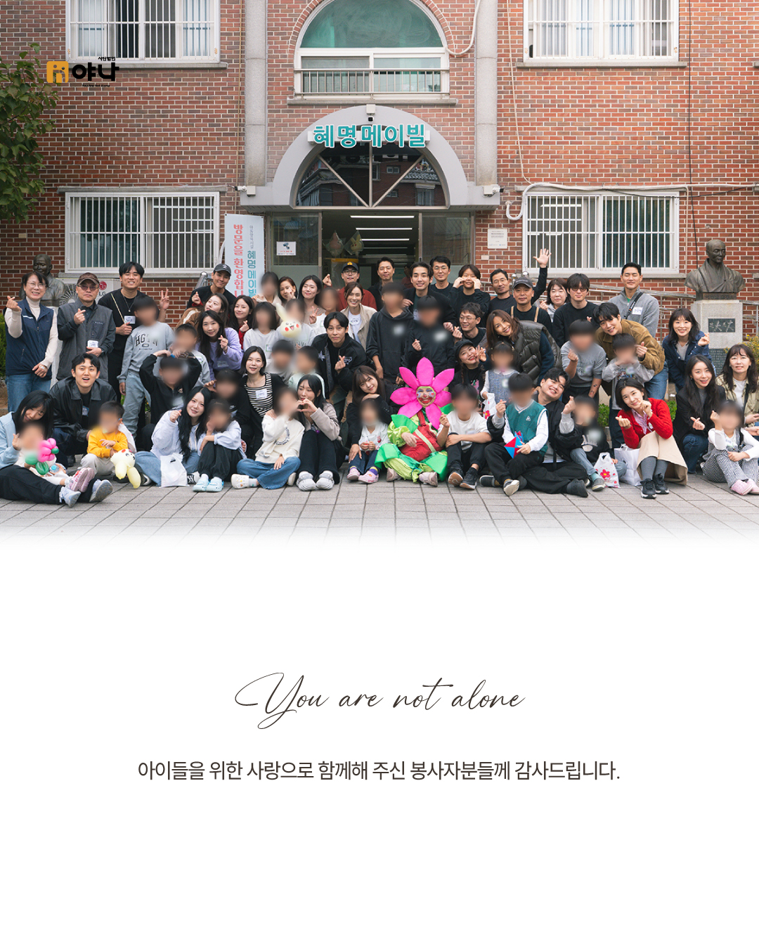 보육원 봉사를 위해 소중한 시간과 사랑으로 아이들과 함께해 주신 모든 봉사자분들께 감사드립니다.