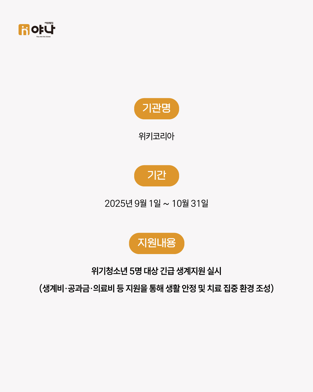 최소한의 생계를 유지하고 안정적인 회복 환경을 마련할 수 있도록 진행되었습니다.