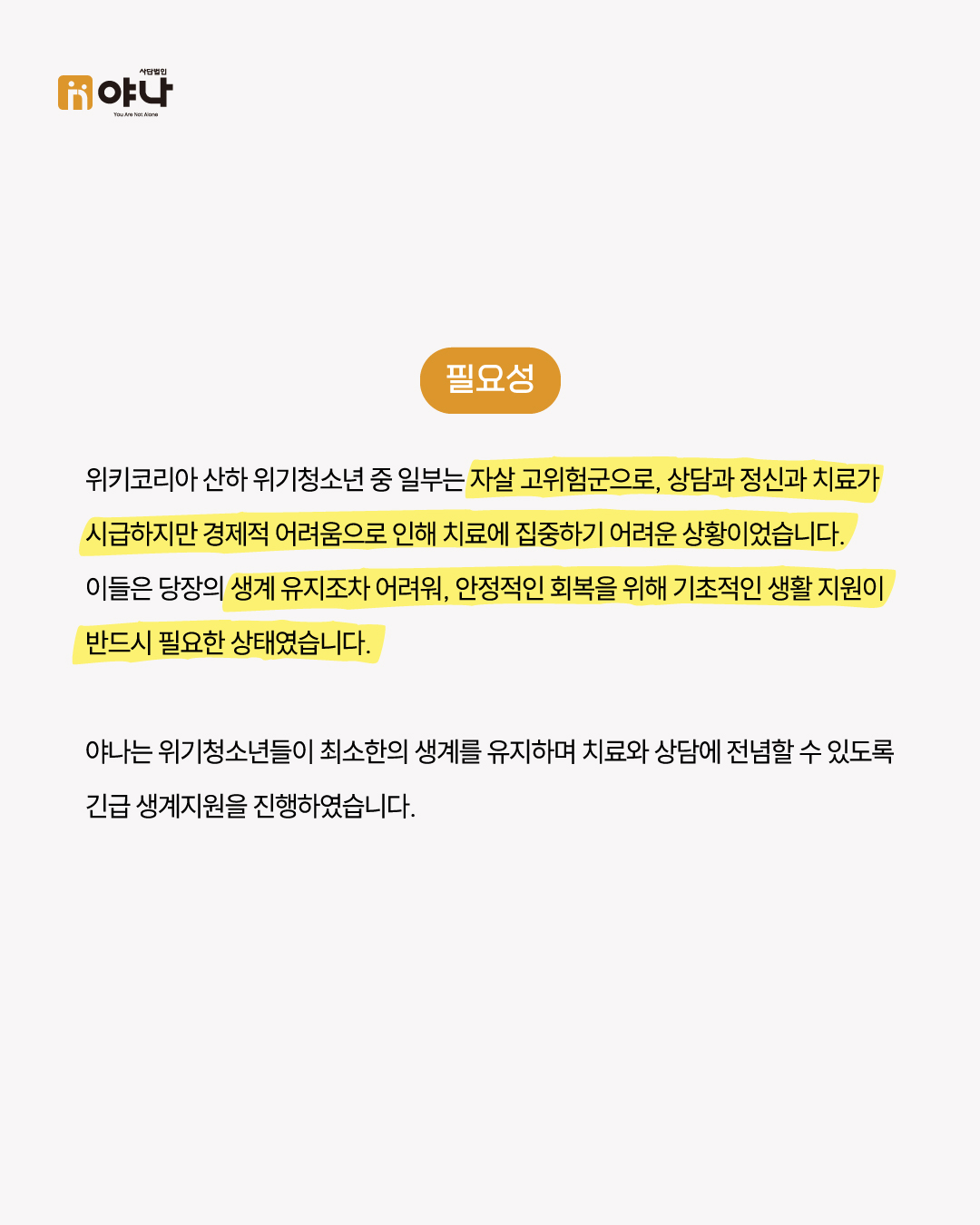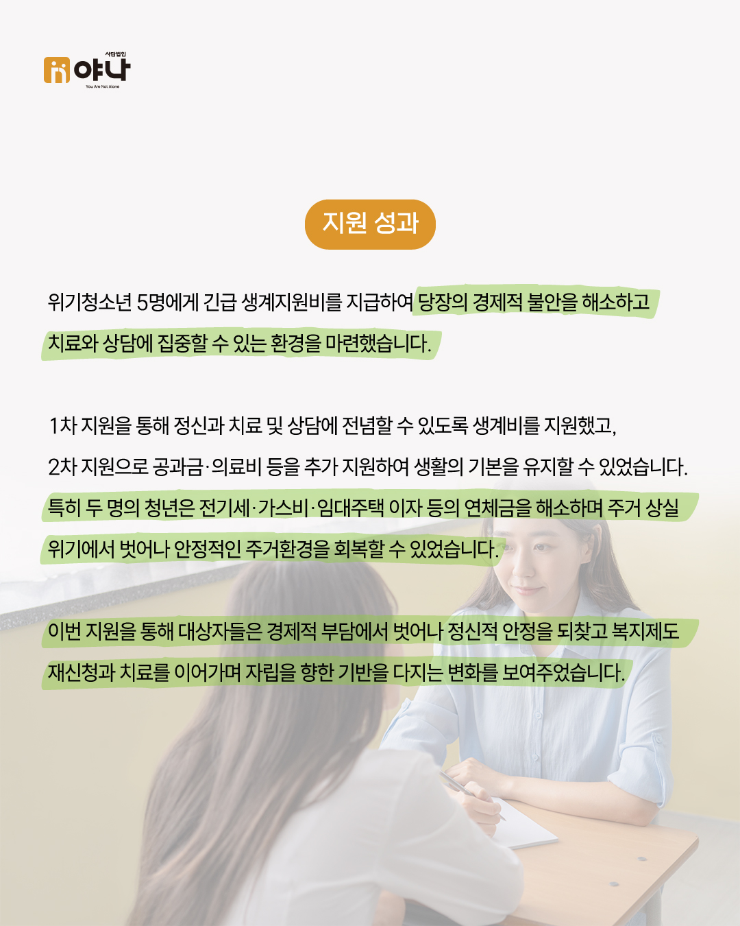 야나는 앞으로도 위기청소년들이