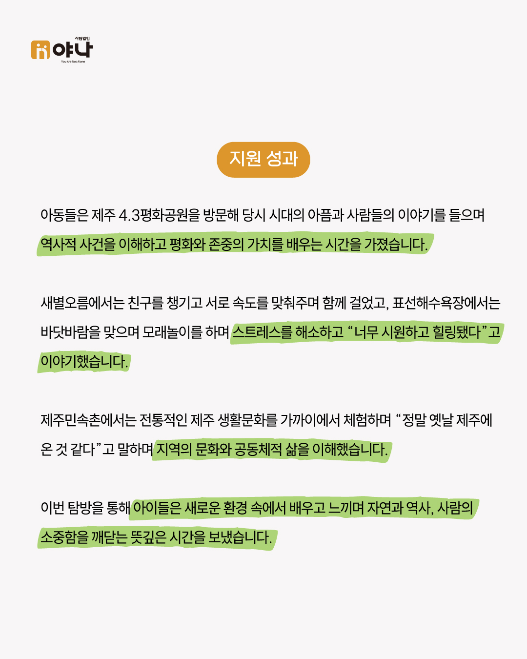 야나는 앞으로도 아동들이 힐링하면서 스트레소를 해소하고