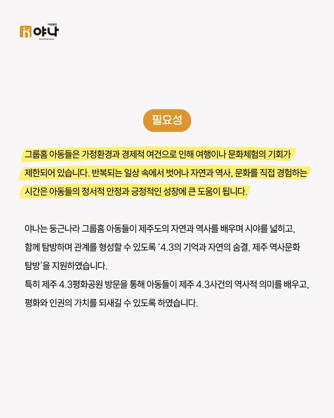 야나소식야나(yana)는 아이들의 안정과