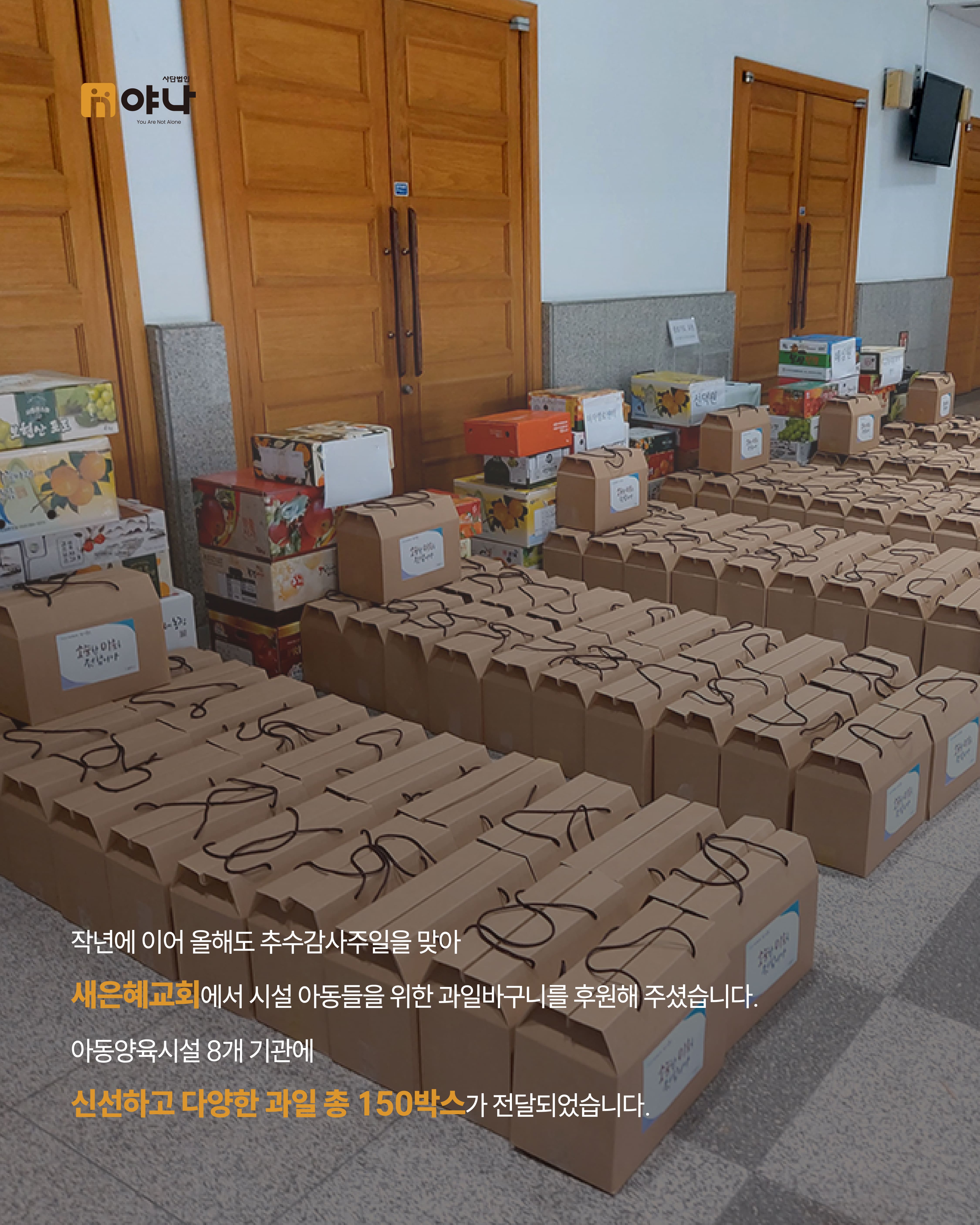 아동양육시설 8개 기관에 신선하고 다양한 과일 총 150박스가 전달되었습니다.