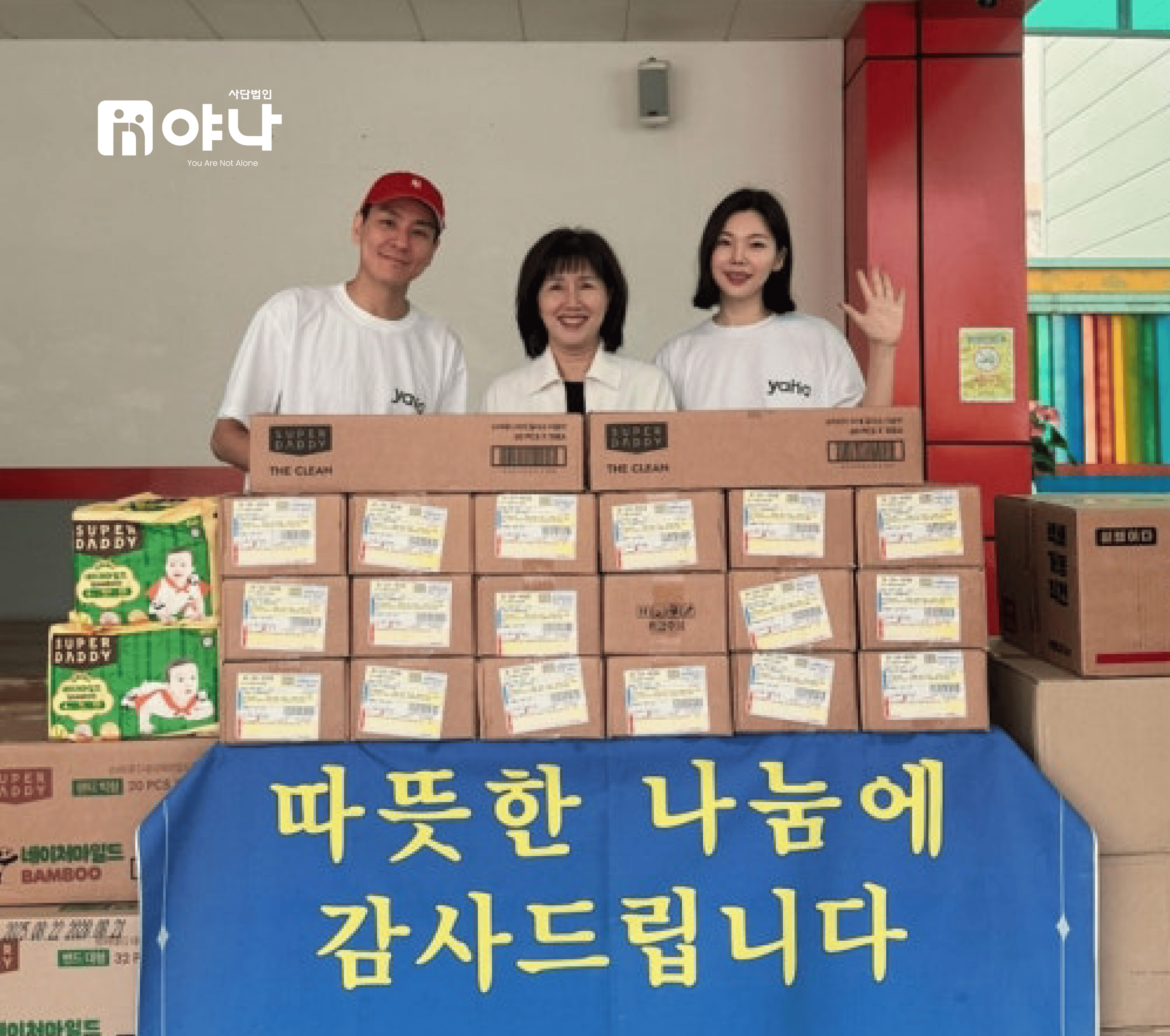 윤남기&이다은님을 통해 슈퍼대디 브랜드 물품이 아동양육시설 3개소와 위기청소년을 돕는 위키코리아에 후원되었습니다.